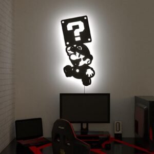 Transform any room into a captivating and vibrant setting with the Mario LED Backlit Logo. Designed with Super Mario fans in mind, this striking piece combines functionality with nostalgic appeal, making it an ideal addition to kids’ bedrooms, gaming setups, trendy cafés, or as a thoughtful gift for gaming enthusiasts.