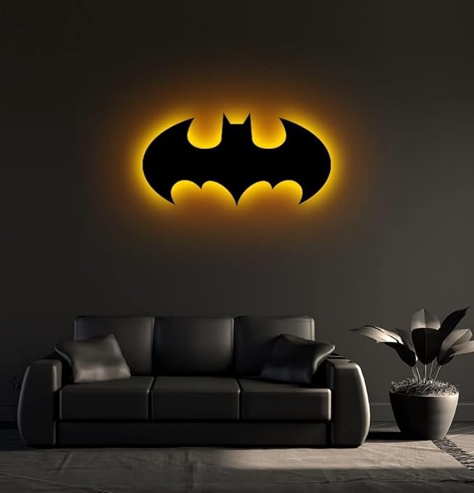 Bring Gotham vibes to your space with this 18-inch Batman Backlit LED Wall Art featuring a bold blue glow. Perfect for superhero fans, gamers, and collectors, this wall piece adds a striking touch to bedrooms, gaming setups, living rooms, or offices. With energy-efficient LED lighting and easy installation, it’s a must-have decor for every Dark Knight fan.