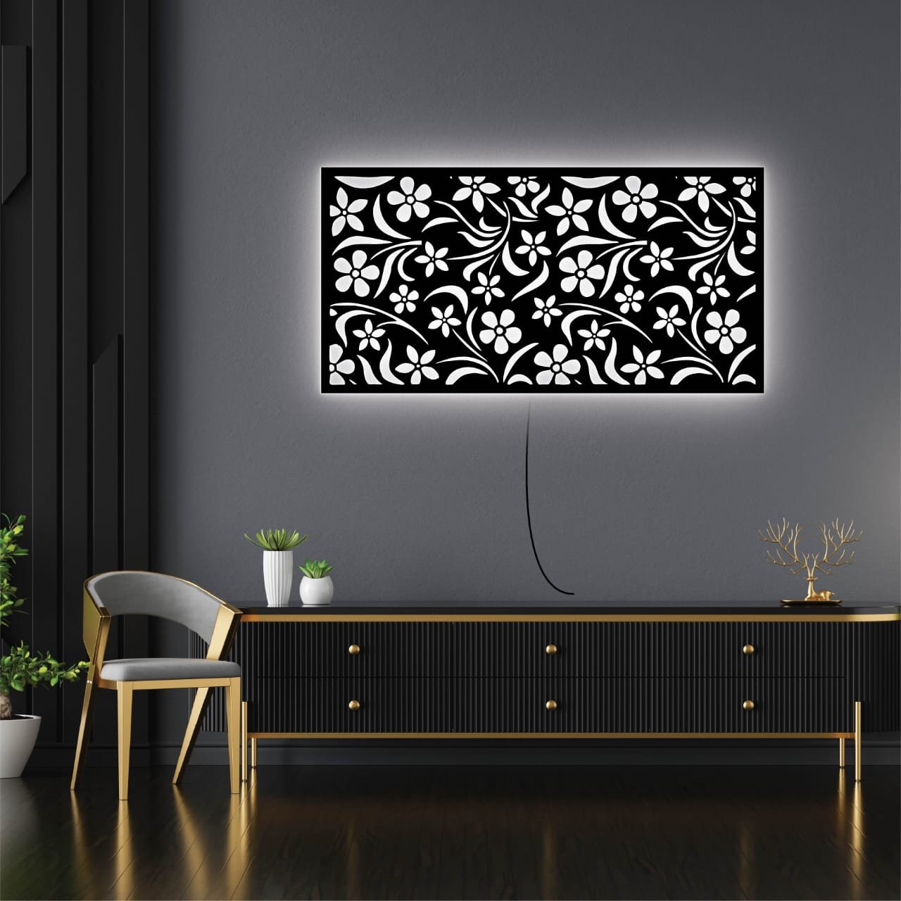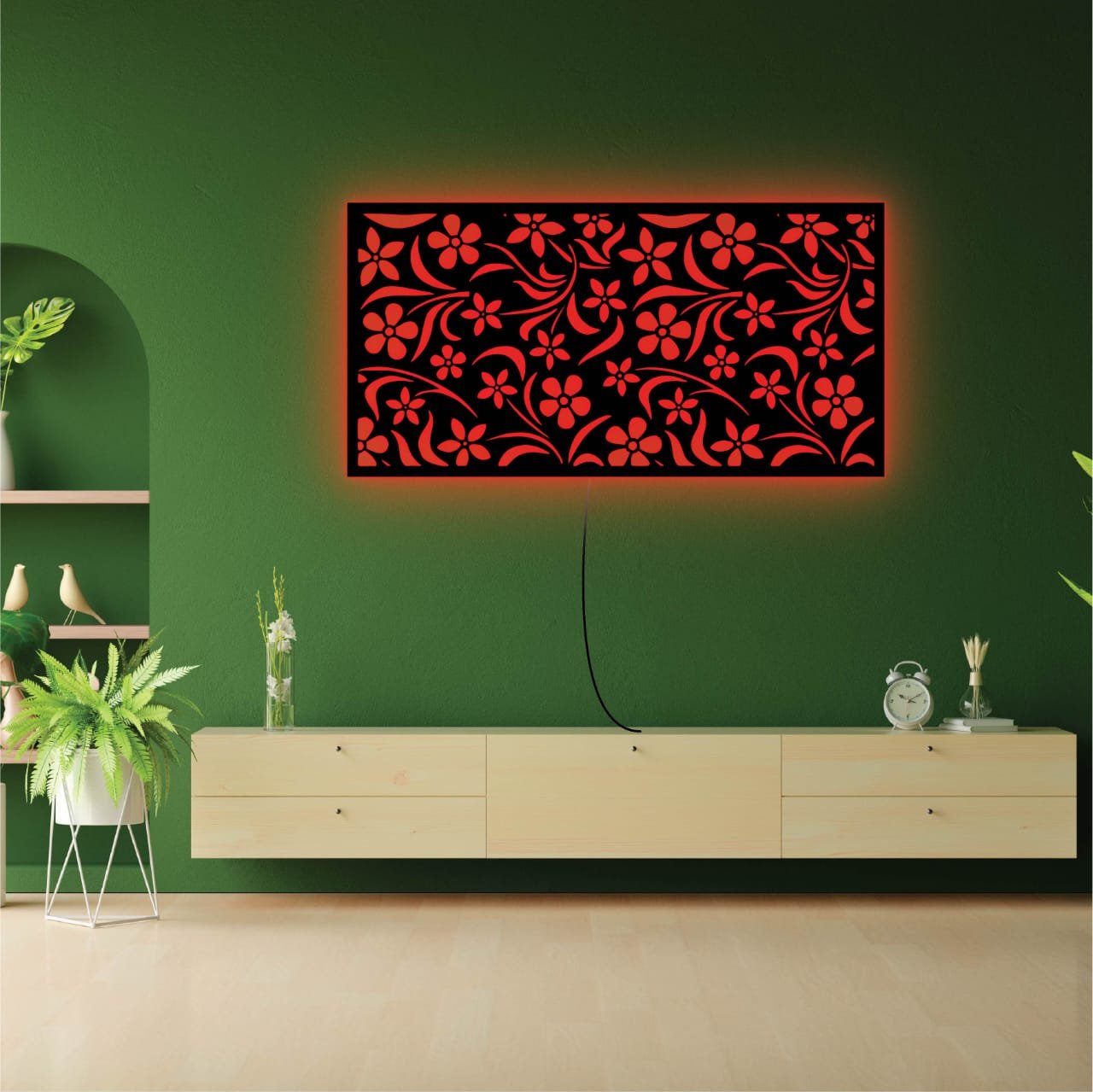 Enhance your interior décor with this beautifully crafted Floral Pattern LED Wall Panel, a perfect fusion of modern lighting and artistic design. The panel features an intricate floral motif laser-cut into a sleek black surface, backlit with a soothing blue LED glow that radiates from the edges and through the patterns.